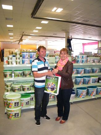 A nyertes Trungel Tibor egyéni vállalkozó lett, akinek a mai napon a Basacolors elküldte nyereményét, és a Molnár Elefánt Barkácsáruházba azt át is vette Molnár Ferencnétől a cég tulajdonosától.