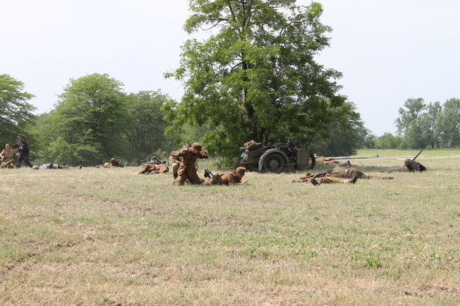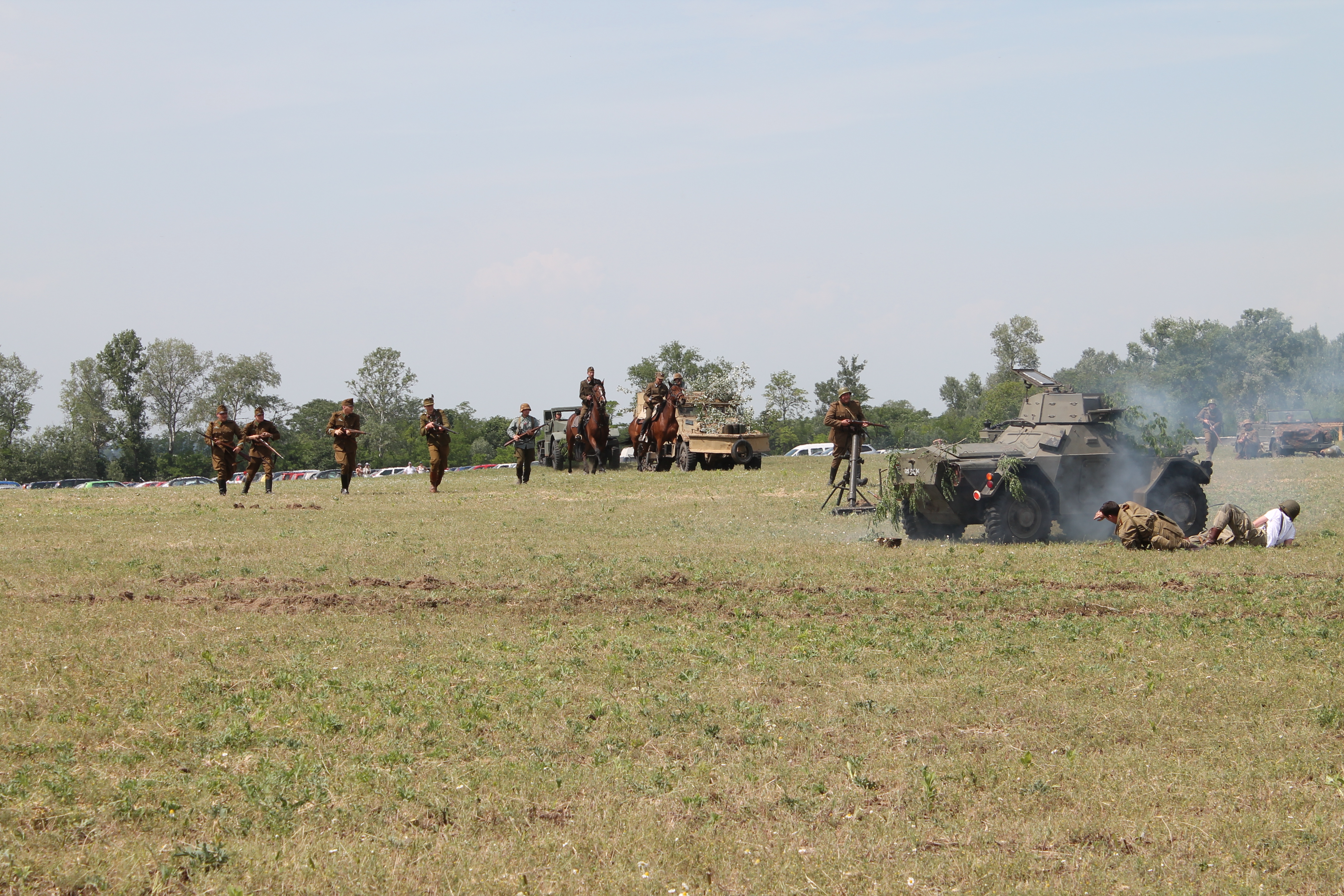 A tanulságos előadás után a csapat nagyobb része az első világháborús csata helyszínére igyekezett. A harcot korhű öltözet és fegyverzet tette tökéletessé, valamint az, hogy a légtérben feltűnt egy PO-2-es repülőgép is.