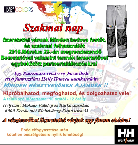 2016.Március 23.-án reggel 10 órától megrendezendő, Bemutatóval valamint termék