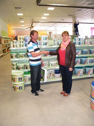 A nyertes Trungel Tibor egyéni vállalkozó lett, akinek a mai napon a Basacolors elküldte nyereményét, és a Molnár Elefánt Barkácsáruházba azt át is vette Molnár Ferencnétől a cég tulajdonosától.