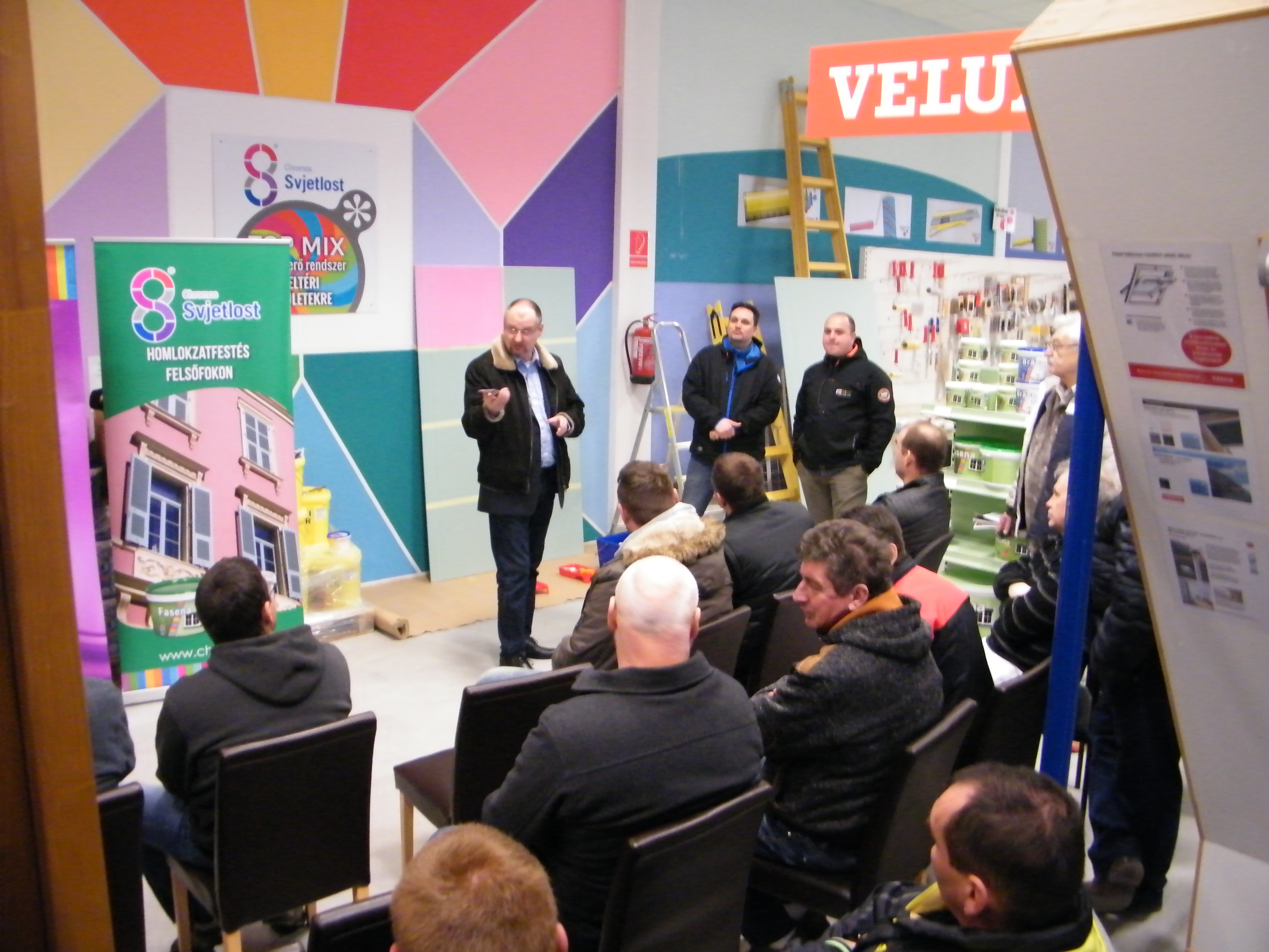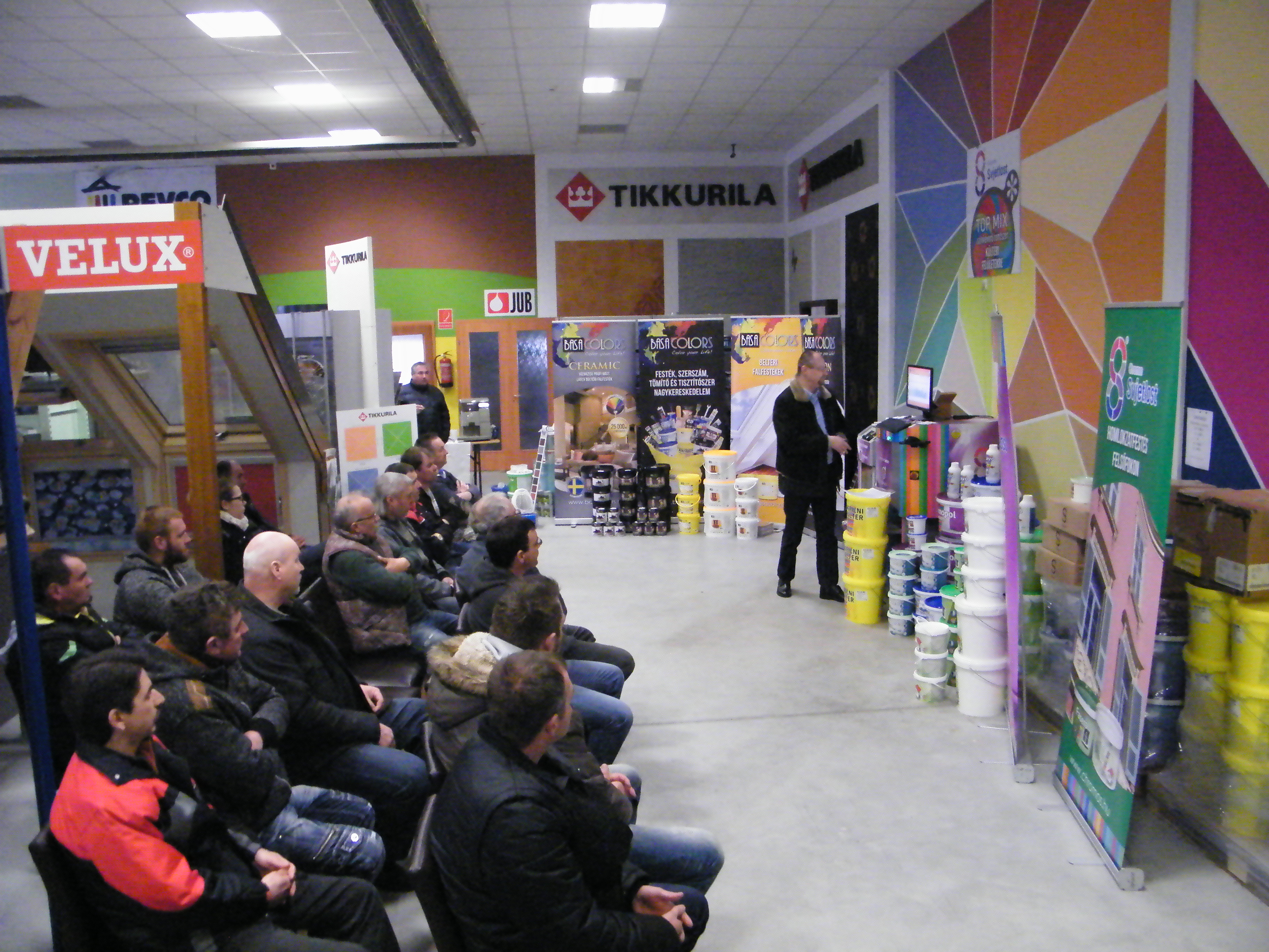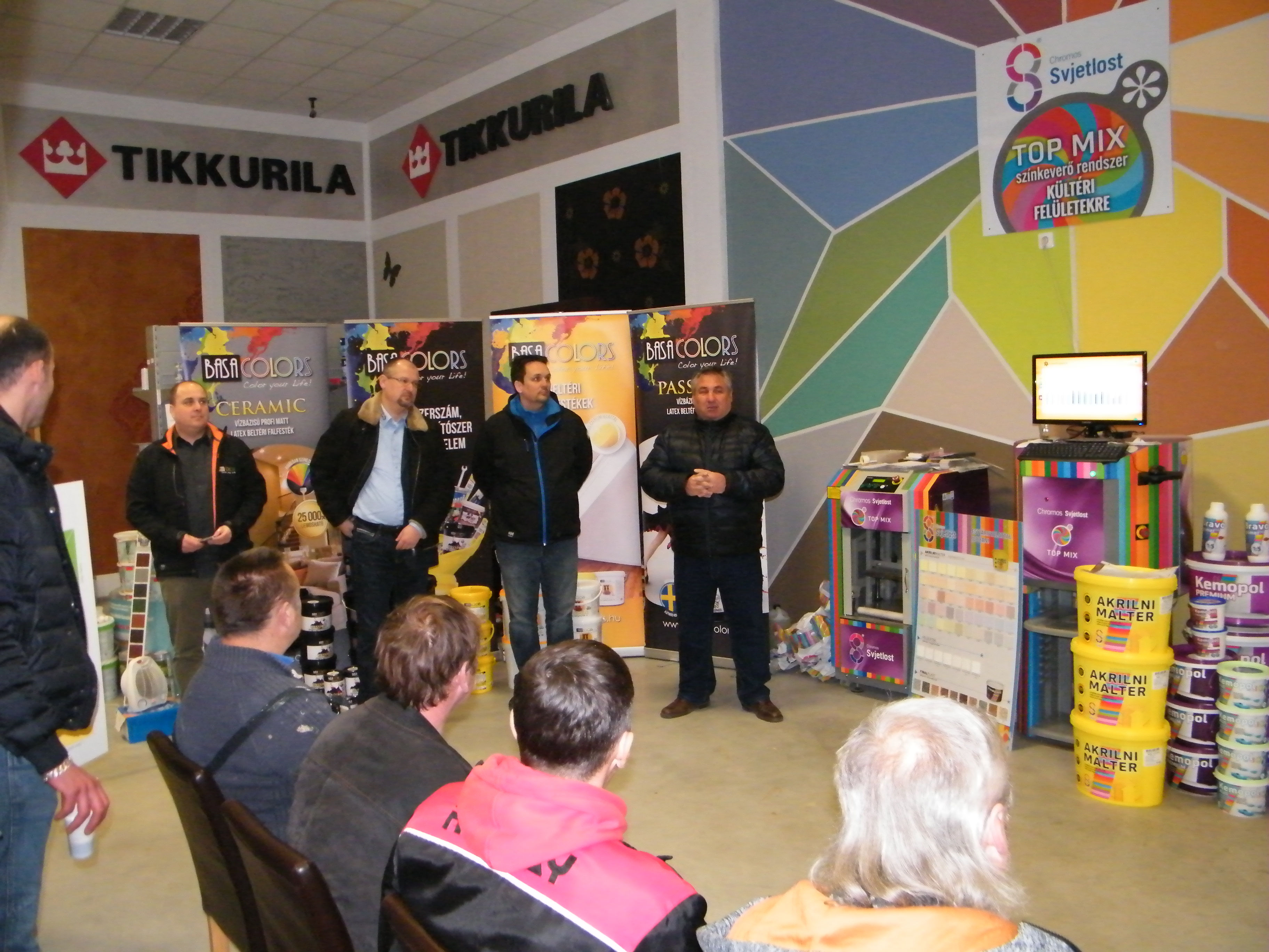 A találkozó nagyon jó hangulatban telt, mely köszönhető elsősorban Havér Tamásnak a Chromos képviselet vezetőjének, aki lendületes, és rendkívül érdekes szakmai bemutatót tartott, melybe bevonta a jelen lévőket is, ezáltal magával ragadva őket a Basacolors és a Chromos világába.