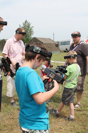 A megnyitó után a gyerekek legnagyobb örömére elindultunk az első szervezetett programra. A lézer arénában 5 fős csapatokban küzdhettek meg egymással az "ellenfelek". A gyerek mellett a felnőttek is élvezték a játékot, ki a pályán, ki a pálya széléről igyekezett segíteni csemetéjének.