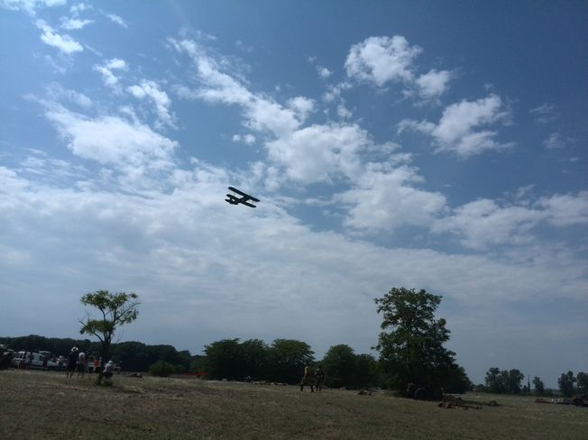 A tanulságos előadás után a csapat nagyobb része az első világháborús csata helyszínére igyekezett. A harcot korhű öltözet és fegyverzet tette tökéletessé, valamint az, hogy a légtérben feltűnt egy PO-2-es repülőgép is.